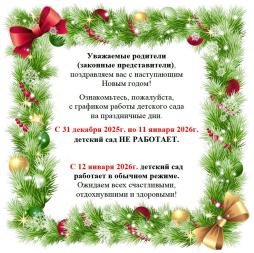 График работы детского сада на праздничные дни30.12.2025